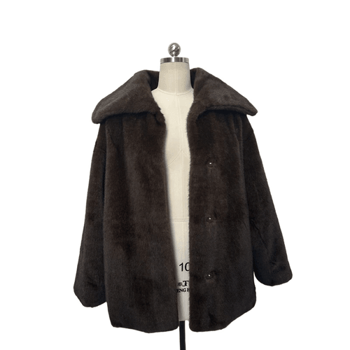 Elegant faux mink fur coat designed in a mid-length cut for timeless style and warmth. Featuring a plush non-removable fur collar and relaxed fit, this coat provides comfort while maintaining a refined look. Perfect for layering during cold autumn and winter days, it adds a touch of sophistication to any casual or chic outfit.