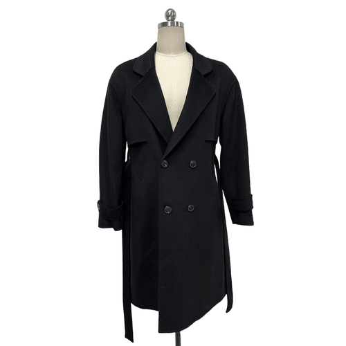Classic men’s long coat crafted from a premium 90% wool and 10% polyester blend, featuring a double-breasted front, notched lapel, and belted waist. Its sleek tailoring and minimalist design make it a versatile outerwear piece for autumn and winter, ideal for both casual and semi-formal looks.