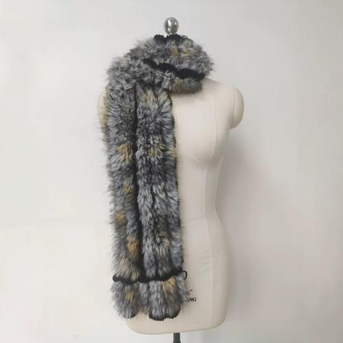 Stylish faux fur knitted scarf designed for warmth and comfort during the winter season. Handcrafted with soft faux fur yarn, it offers a plush feel and fashionable look. The multicolor gray pattern adds a modern touch, making it a versatile accessory for both casual and chic outfits. Perfect for layering and keeping cozy on cold days.