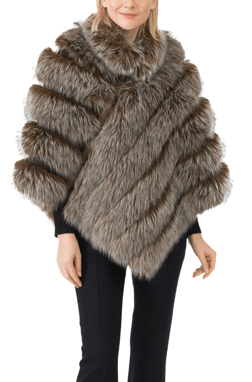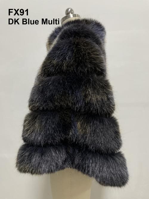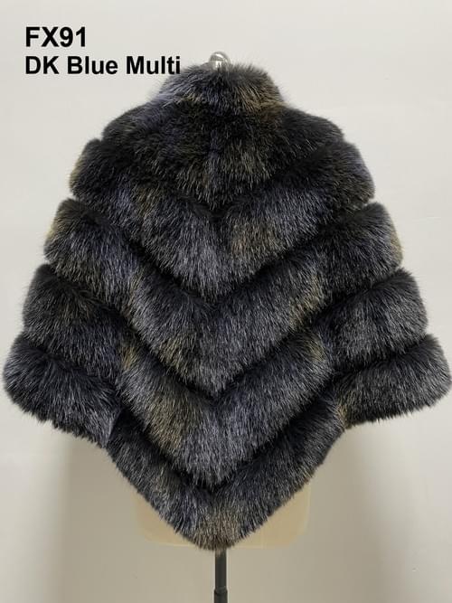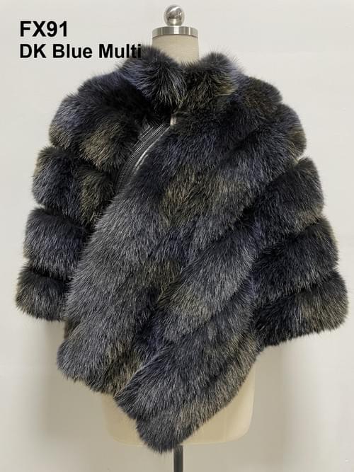 Elegant faux fur shawl designed with a luxurious multi-color patchwork finish. Crafted from high-quality faux fur with PU trim, this shawl is soft, warm, and eye-catching. The relaxed drape and plush fur collar make it perfect for layering over dresses or coats, ideal for autumn and winter occasions, from casual outings to evening events.