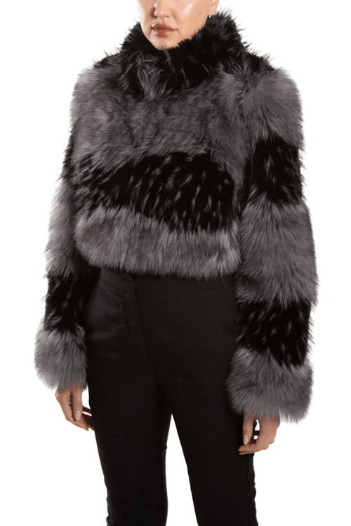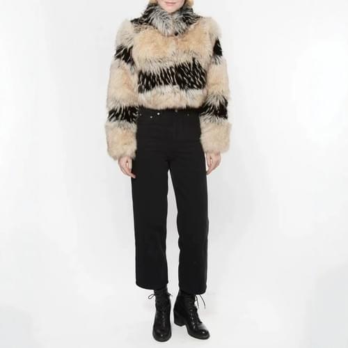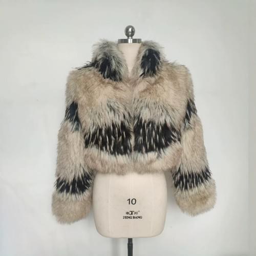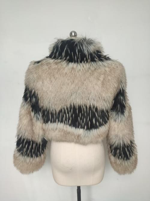 Trendy short-length faux fur coat designed with a stand collar and long sleeves for a cozy yet fashionable look. Made from soft faux fur with a plush texture, this jacket offers both warmth and style. Perfect for pairing with jeans or skirts for an elevated urban winter outfit.