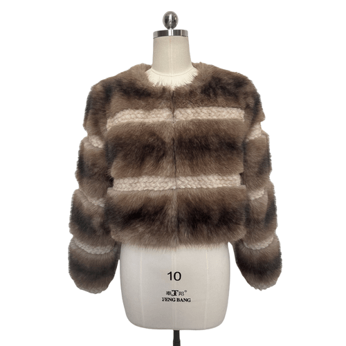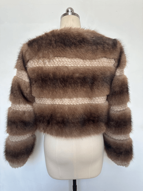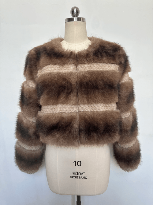 Women’s Faux Fur Short Coat – Brown Gradient Stripes