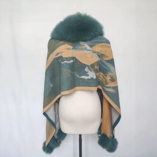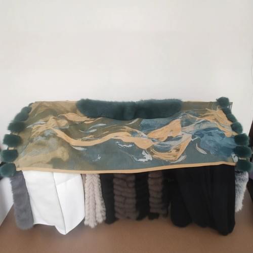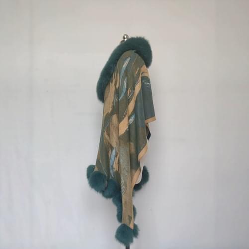 This elegant faux shearling shawl features a unique fish-scale floral embroidery design combined with soft faux fur trimming. Its generous drape and plush texture provide both warmth and sophistication, making it a perfect choice for layering during autumn and winter. The vibrant green tone paired with intricate floral patterns adds a stylish and modern touch, suitable for both casual outings and chic occasions.