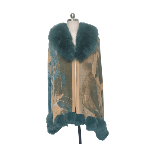 Women’s Faux Shearling Shawl with Floral Embroidery – Green