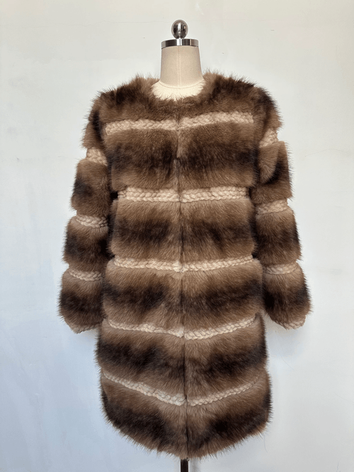This women’s long faux fur coat features a bold purple mix print design, offering a chic and luxurious look. Made from high-quality faux leather and faux fur, it provides warmth and style for the winter season. With its straight cut and long length, it’s the perfect statement outerwear for both casual outings and special occasions.