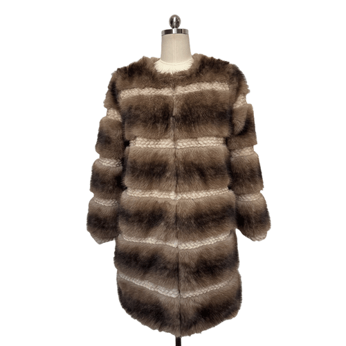 Women’s Long Faux Fur Coat – Purple Mix Print