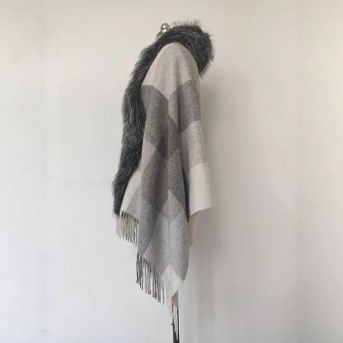 Stay stylish and warm with this elegant plaid wool blend poncho. Designed with a chic oversized cut, it features a soft faux fur collar that adds a touch of luxury. Lightweight yet cozy, this poncho is perfect for layering during chilly winter days. Its versatile design makes it an effortless piece to elevate both casual and sophisticated outfits.