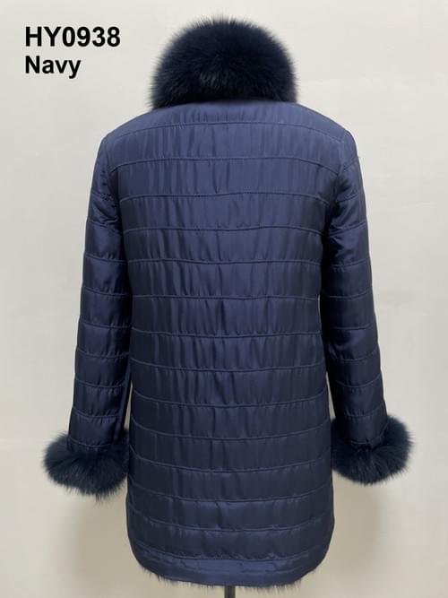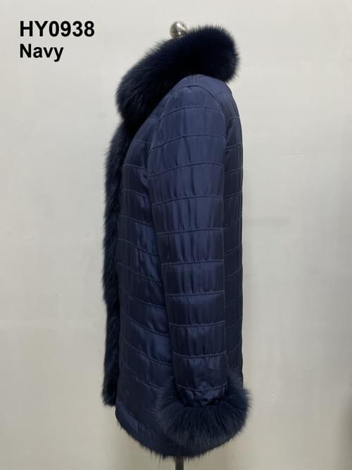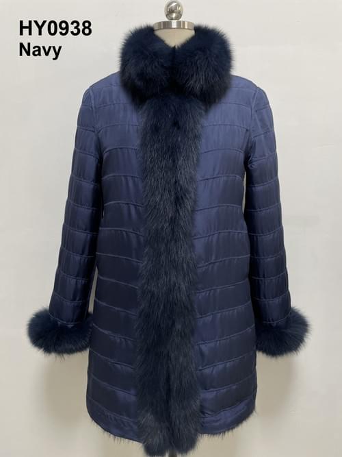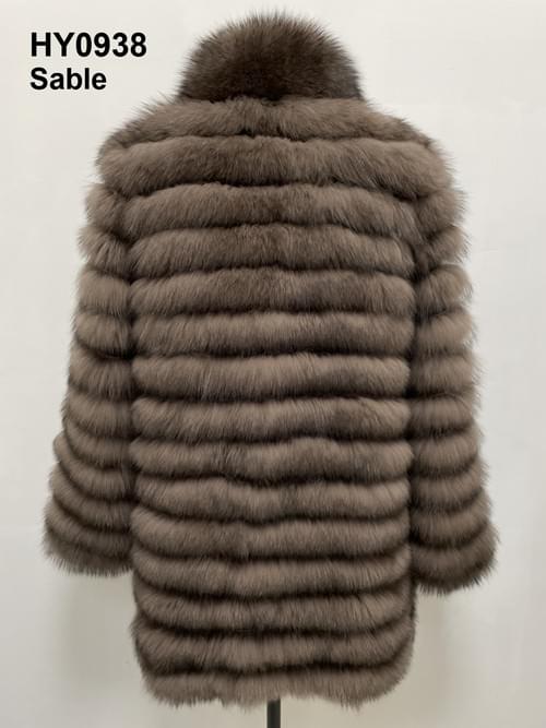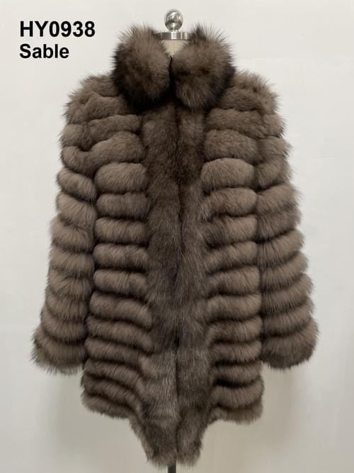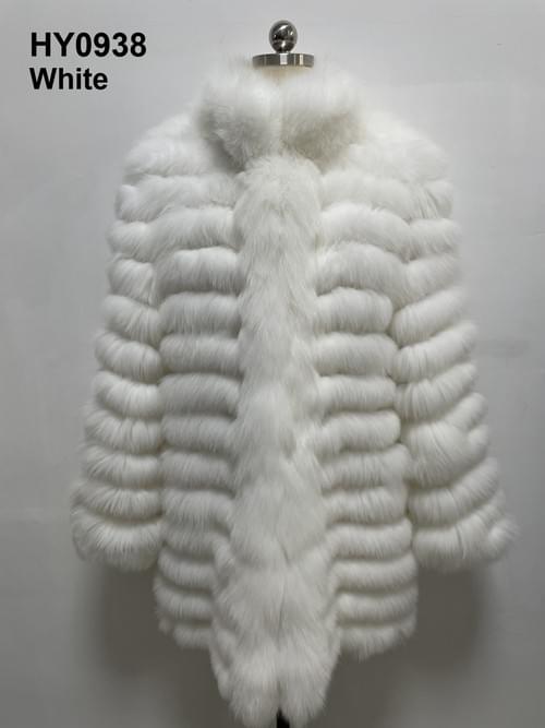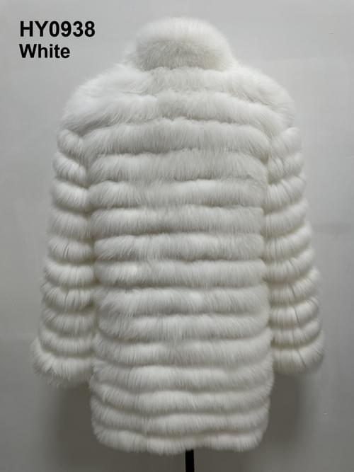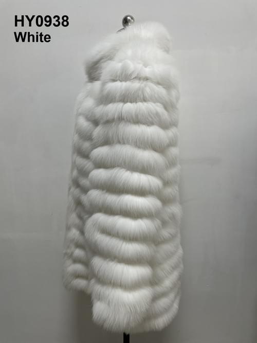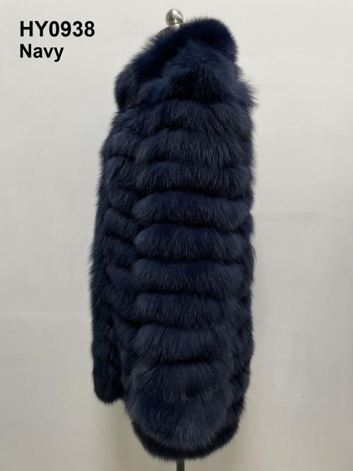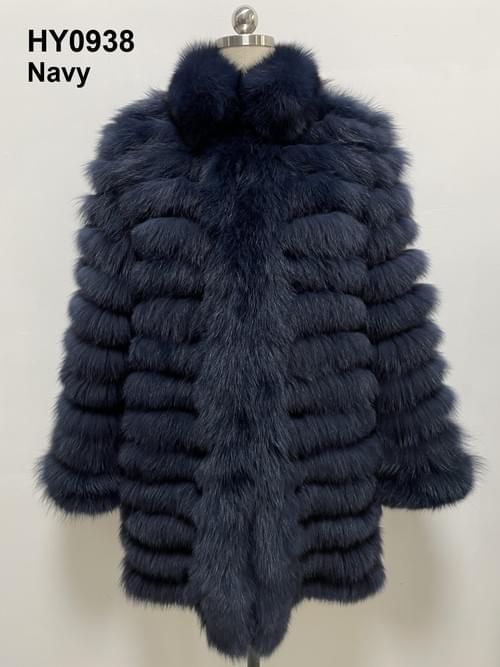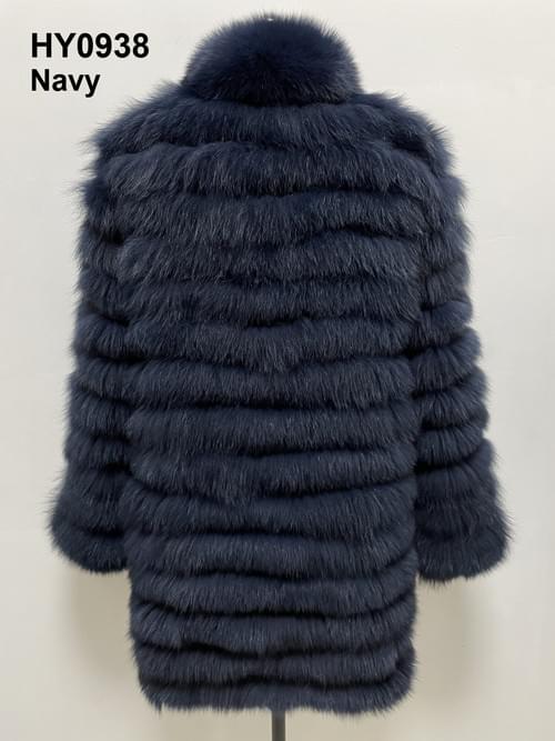 Stylish women’s winter coat made of genuine fox fur with a long design and double-sided wear. Features a stand collar with fur trim, offering both warmth and elegance. Perfect for cold weather and fashionable occasions.