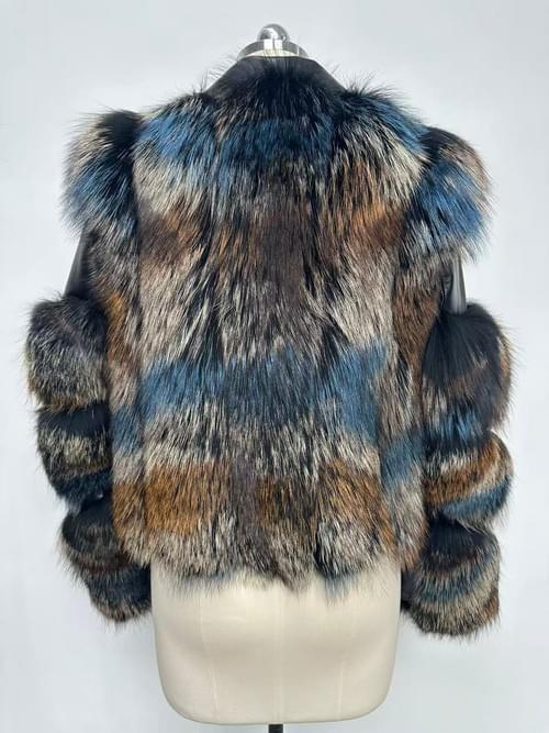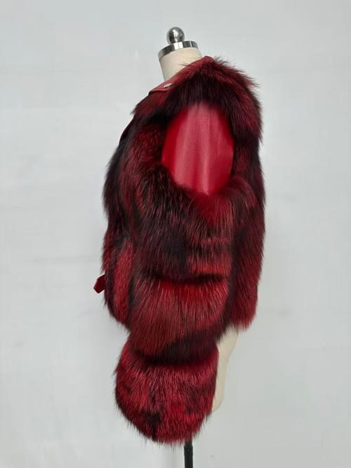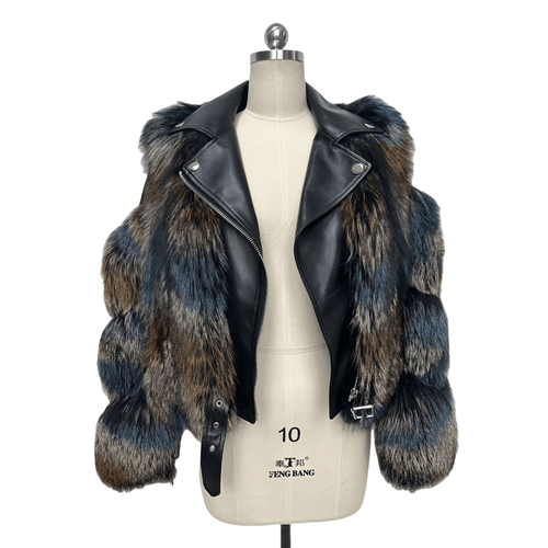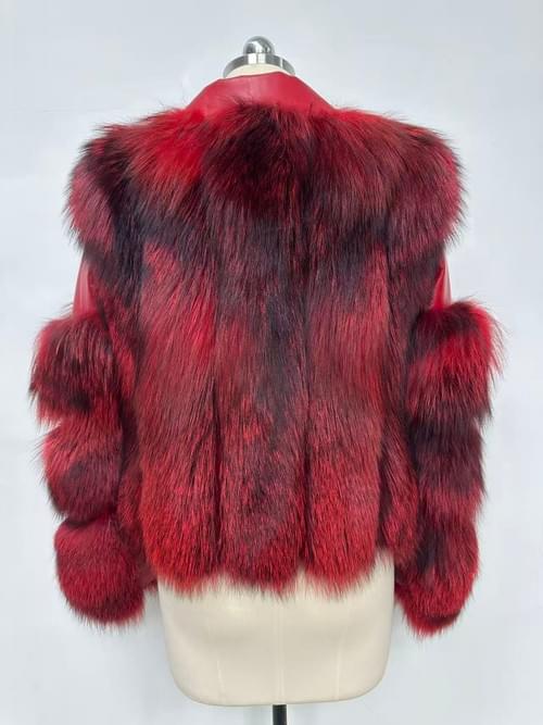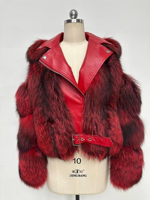 Women’s Real Fur & Leather Coat– Fox Fur Splicing, Short Style