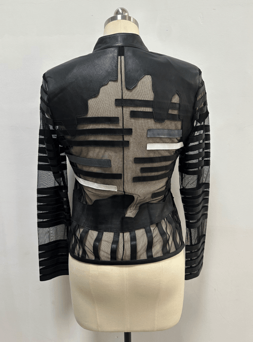 Women’s Sheepskin Jacket – Mesh & Silk Patchwork