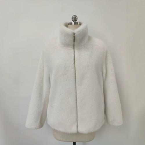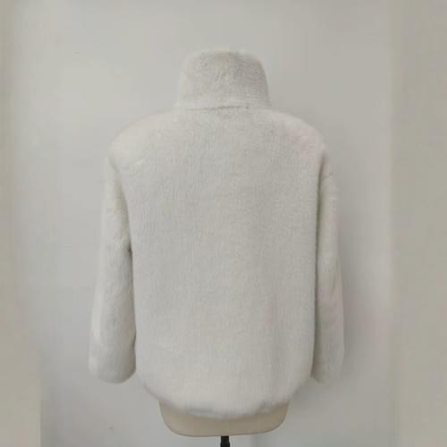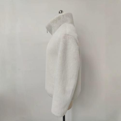 Stay chic and cozy with this white faux fur short coat, crafted with a refined stand collar and soft faux mink texture. Designed with a zip closure and a sleek silhouette, this coat is perfect for pairing with both casual and formal looks. Lightweight yet warm, it’s an ideal piece for autumn and winter layering.