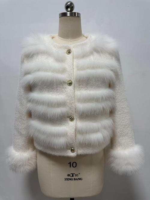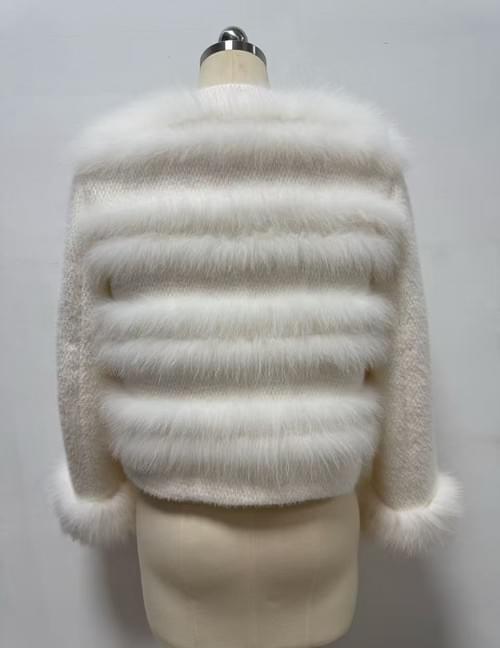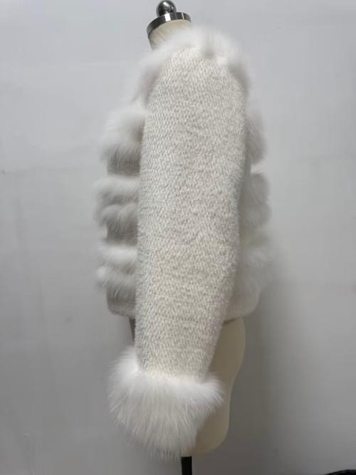 A chic cropped jacket combining soft wool-blend fabric with luxurious fox fur trim. Designed in an elegant white color with a classic round collar and button closure, this piece delivers both warmth and sophistication. Perfect for autumn and winter, the timeless short design makes it an ideal choice for parties, dinners, or everyday styling.